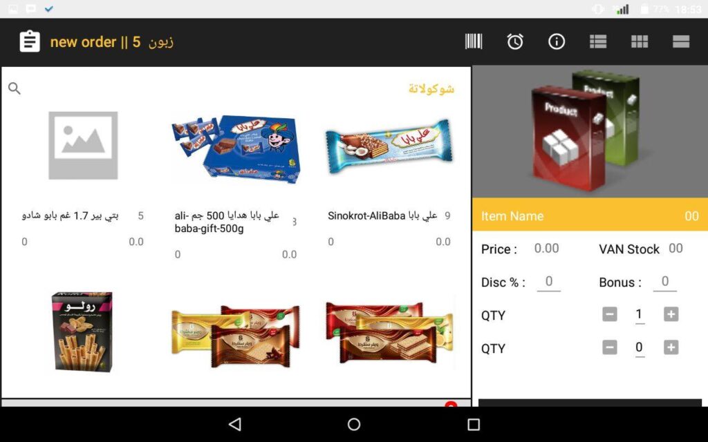 صمم نظام الأصيل لإدارة مندوبي المبيعات، سهولة فائقة في العمل، ليس مجرد تطبيق لعمل طلبات بيع او مبيعات مباشرة، انما هو أداة لعرض وتسويق المنتجات من خلال الصور الخاصة بكل صنف، يعمل على نظام اندرويد مصمم للأجهزة اللوحية 7 و 10 انش.